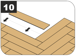 В каждой коробке кварцевого ламината упаковано 50% левых и 50% правых плашек. Комбинируя «левые» и «правые» плашки, можно получать желаемые варианты укладки. Для каждого варианта укладки необходимо проводить предварительную разметку по основанию для того, чтобы учесть все нюансы.